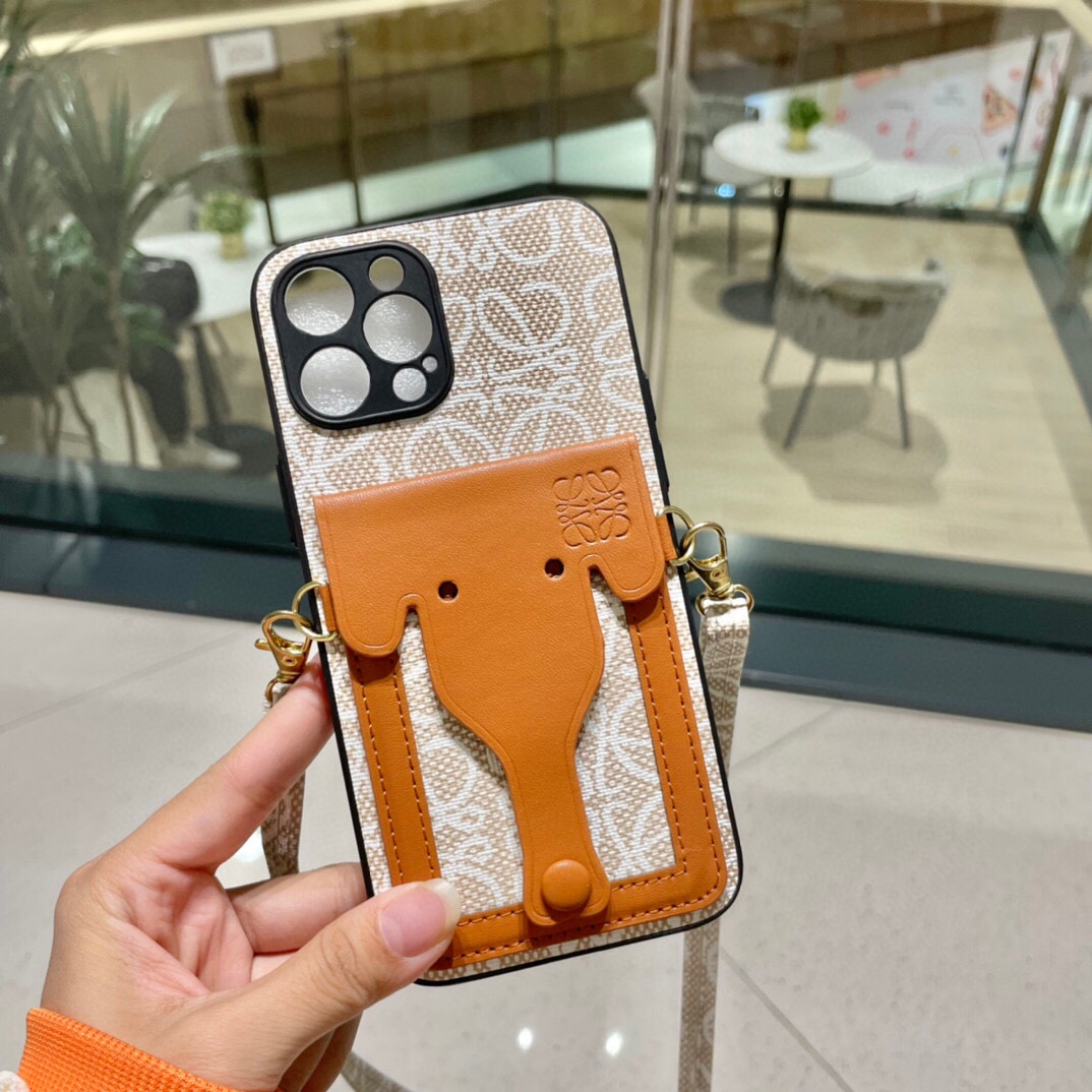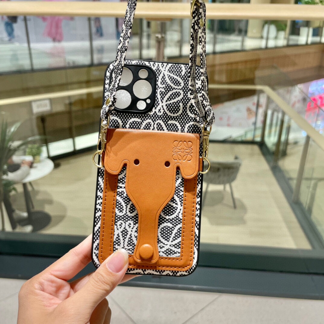 LOEWE ブラウン エンボス加工 電話ケース zm